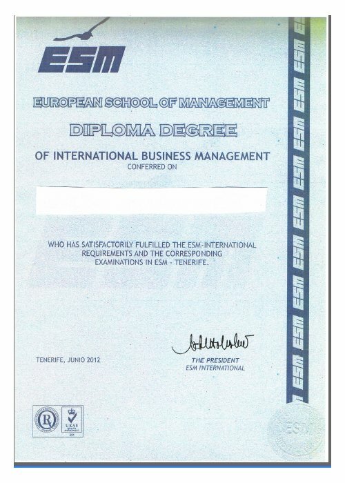 El Licence Degrée Máster MBA Europeo Privado en Dirección y Administración de Empresas ESM, y, de manera opcional, el Máster of Business Administration por la Universidad Bircham Interntational University (BIU). También la posibilidad de obtener, en el 4º curso, la titulación de Cambridge que ya está en la página web.